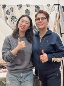 In order to express our gratitude for the client’s trust, we specially prepared a delicate gift box for her, which contains our classic silk scarf and a triangular scarf. The client was very surprised and moved by this thoughtful arrangement. At the end of the cooperation negotiation, she highly praised our services and products and took photos with us: “Your team is very professional, and you can accurately grasp my needs. The quality of the silk scarves is beyond my expectation, and the price is very competitive in the European market.” She also said that she plans to customize silk scarves with her boutique’s exclusive logo, patterns, and packaging next month, and hopes to establish a long-term and stable cooperative relationship with us.
