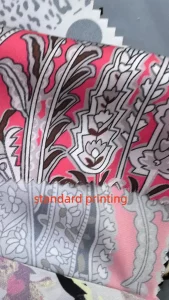 Standard Printing: Uses low-pressure ink application, so color only adheres to the fabric’s surface. On satin chiffon, this results in: